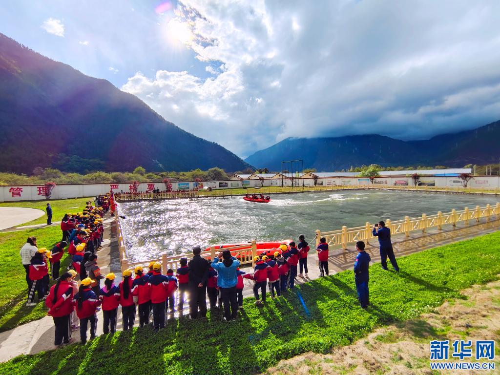 米林縣森林消防中隊(duì)向參觀師生演示水域救援流程。李銀初攝