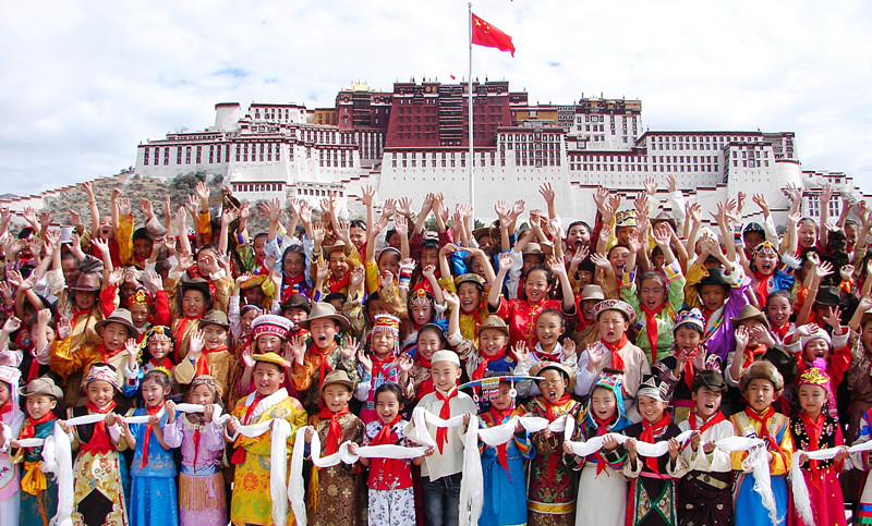 圖為拉薩市第一小學(xué)60年校慶時,全校學(xué)生盛裝在布達(dá)拉宮廣場合影留念。(資料圖片) 記者 旦增西旦 攝
