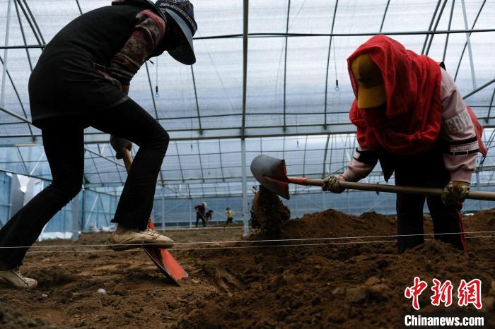 正在大棚內(nèi)松土的措姆介紹,自己是附近的農(nóng)牧民,根據(jù)熟練程度,她們每天的務工費從180元到200多元不等?!皥@區(qū)還負責一頓午飯,也不影響自家的農(nóng)活,有空就來?!贝肽氛f。