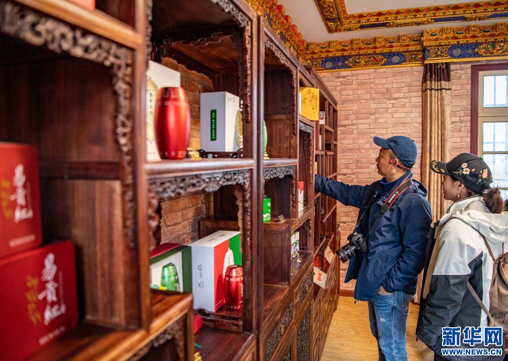 拉薩市北京路,崗堅(jiān)茶葉股份有限公司門(mén)店內(nèi),一些造型獨(dú)特、包裝各異的茶葉產(chǎn)品吸引著顧客。