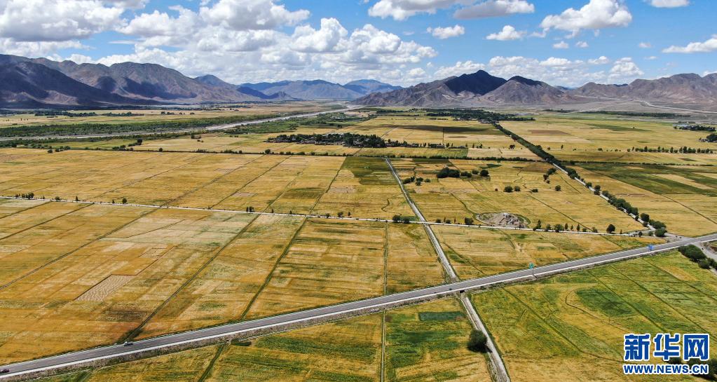 俯瞰西藏日喀則市白朗縣的農(nóng)田(2019年8月31日攝,無人機(jī)照片)。新華社記者 晉美多吉 攝