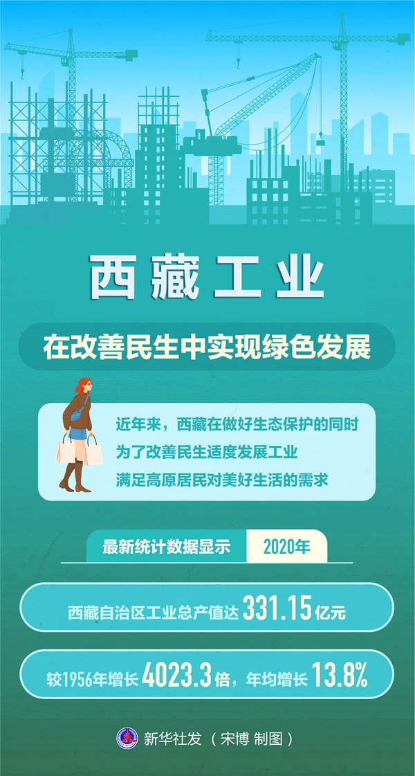 近年來,西藏在做好生態(tài)保護(hù)的同時(shí),為了改善民生適度發(fā)展工業(yè),滿足高原居民對(duì)美好生活的需求。最新統(tǒng)計(jì)數(shù)據(jù)顯示,2020年,西藏自治區(qū)工業(yè)總產(chǎn)值達(dá)331.15億元,較1956年增長4023.3倍,年均增長13.8%。