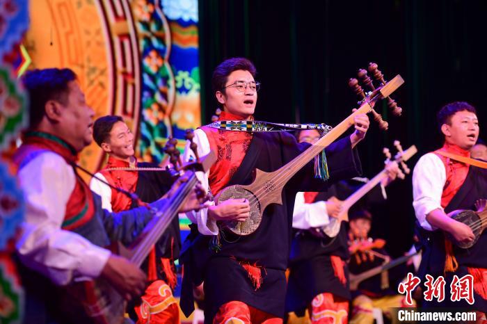 圖為西藏大學(xué)藝術(shù)學(xué)院音樂系帶來(lái)的扎念彈唱《普伊桑林貢巴》。 貢嘎來(lái)松 攝