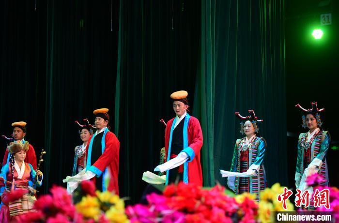 圖為拉薩市城關(guān)區(qū)娘熱民間藝術(shù)團(tuán)帶來(lái)的歌舞《拉薩囊瑪》 貢嘎來(lái)松 攝