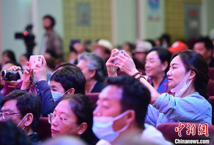 圖為場(chǎng)觀眾正在用手機(jī)拍攝西藏非遺演出。 貢嘎來(lái)松 攝
