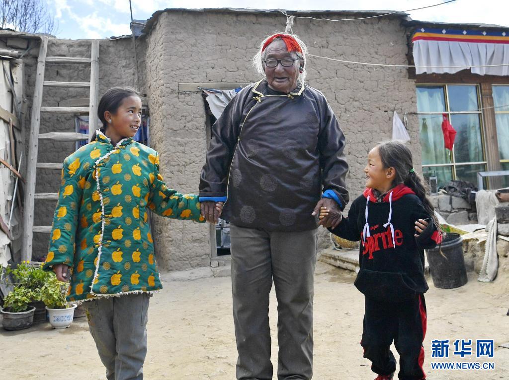 索朗老人拉著曾孫女的手,準(zhǔn)備去散步(4月18日攝)。新華社記者 張汝鋒 攝