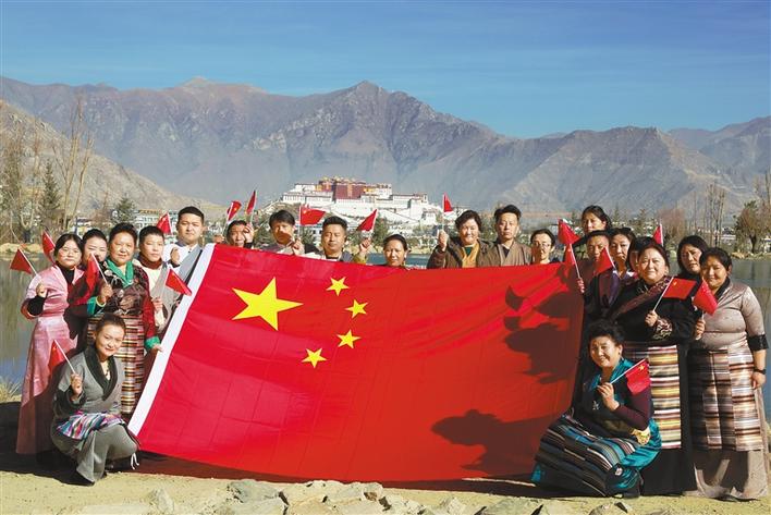 圖為西藏自治區(qū)拉薩市城關(guān)區(qū)夏薩蘇社區(qū)開(kāi)展“我與國(guó)旗合個(gè)影”主題黨日活動(dòng)。