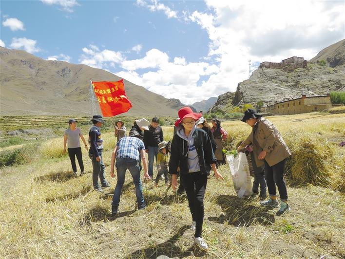 圖為西藏自治區(qū)日喀則市達(dá)那鄉(xiāng)開(kāi)展黨員助農(nóng)秋收志愿服務(wù)活動(dòng)。