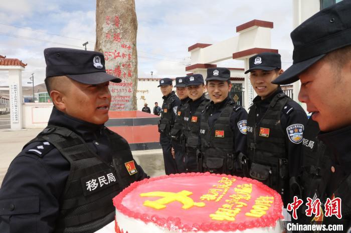 在全國海拔最高的行政鄉(xiāng)普瑪江塘,邊境派出所組織民警在轄區(qū)海拔5600米的崗布冰川開展邊境巡邏工作,并巧手制作了慶祝黨的100年主題生日蛋糕,用實際行動向建黨100周年獻(xiàn)禮。