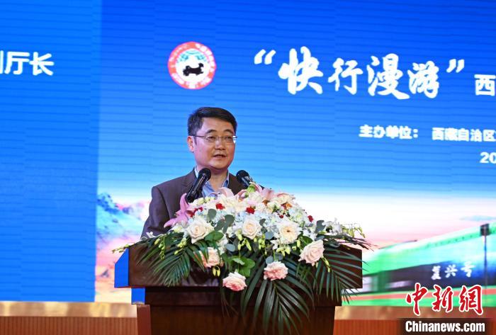 圖為西藏自治區(qū)旅發(fā)廳副廳長姬越致辭。趙朗 攝
