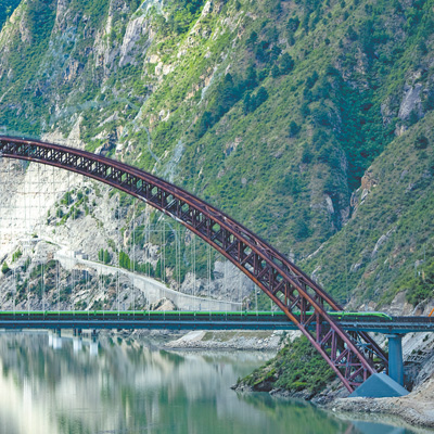6月21日,拉林鐵路測(cè)試車輛通過山南市加查縣的藏木特大橋。記者 徐馭堯攝