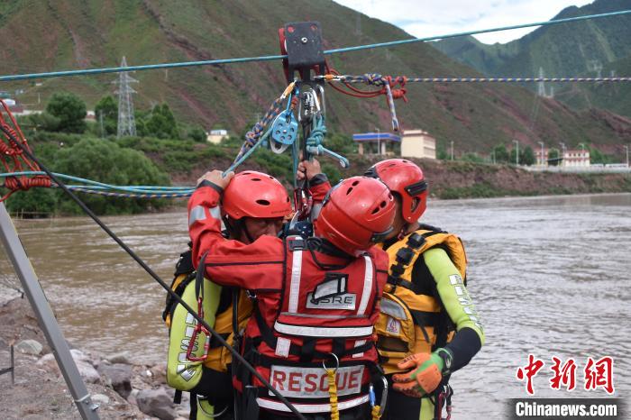 圖為山洪災(zāi)害防汛演練中模擬運(yùn)送傷員。昌都市森林消防支隊 攝
