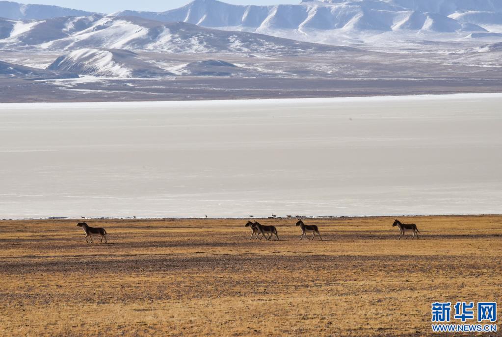 藏野驢在西藏那曲市羌塘國家級自然保護區(qū)內奔跑。(新華社記者 田金文 攝)