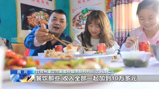 甘孜州康定市新都橋鎮(zhèn)水橋村村民 志瑪澤仁:我有八間房,一間房子80元,一天有三百四百吧,餐飲那些,全部一起加起來10萬多。以前窮得很,旅游的(人)多,318線離我們近得很,現在富起來了。