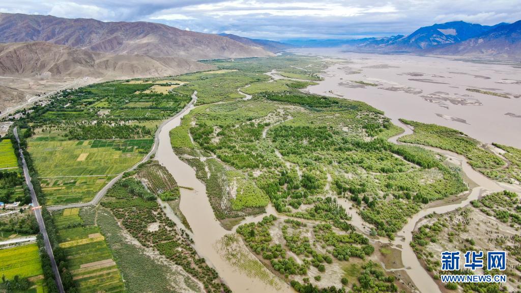 雅魯藏布江山南段公路兩旁的綠色長廊(7月20日攝,無人機(jī)照片)。新華社記者 晉美多吉 攝