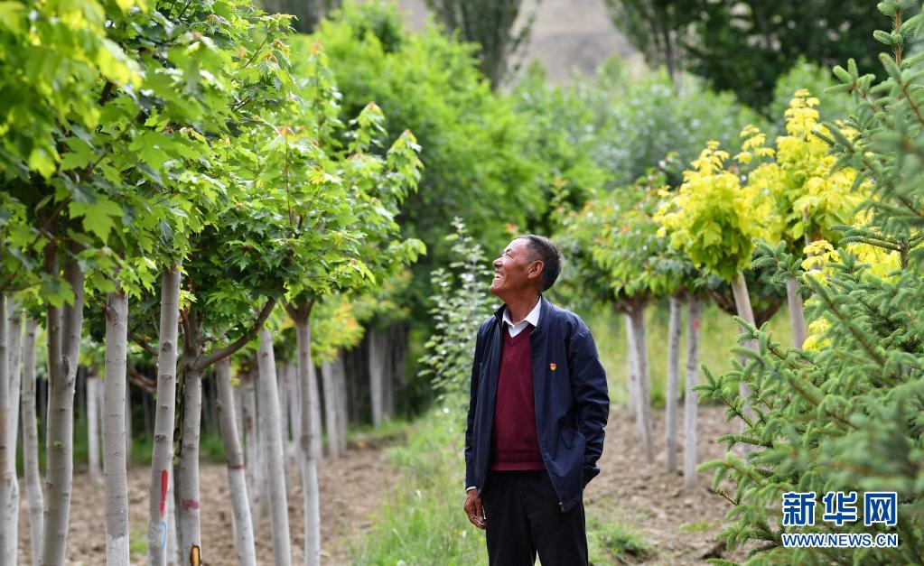 山南市扎囊縣某苗圃基地負(fù)責(zé)人邊久在查看基地內(nèi)栽種的樹苗(7月20日攝)。新華社記者 晉美多吉 攝