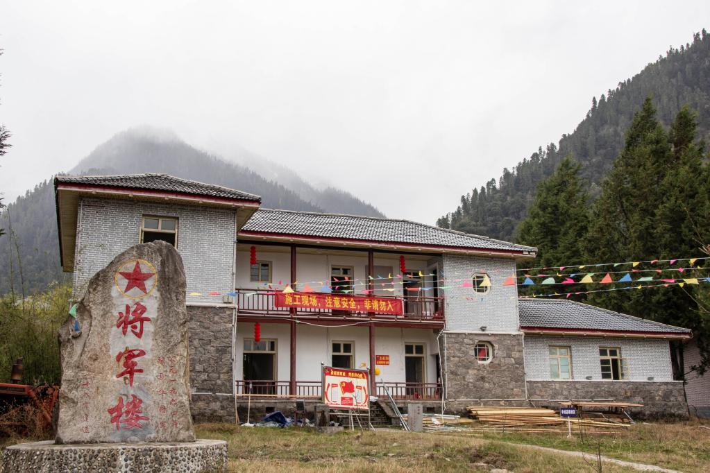 在易貢茶場,一座二層石木結(jié)構(gòu)的小樓前立著一塊石碑,上面用紅漆書寫著“將軍樓”3個大字。據(jù)介紹,這是當(dāng)年十八軍軍長張國華將軍在藏期間的辦公起居地之一?!安筷犃粝铝?0幢樓房和11幢平房,這是茶場最珍貴的紅色遺跡。”才程說。