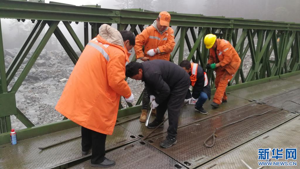 湯剛旦(左)和同事在扎墨公路上執(zhí)行道路養(yǎng)護(hù)任務(wù)(5月13日攝)。新華社發(fā)
