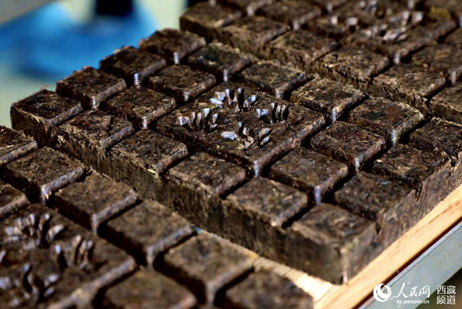 茶場(chǎng)生產(chǎn)的磚茶。人民網(wǎng) 次仁羅布攝