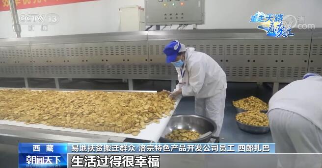 易地扶貧搬遷群眾 洛宗特色產(chǎn)品開發(fā)公司員工 四郎扎巴:我這個車間主要負責(zé)洗青稞、青稞剝皮,我妻子在泡菜車間工作,她每月2400元,我們倆加起來一年也有6萬多(元)收入,以前一年收入不到1萬(元),搬過來以后在這邊實現(xiàn)就業(yè),收入各方面都很穩(wěn)定,生活過得很幸福。