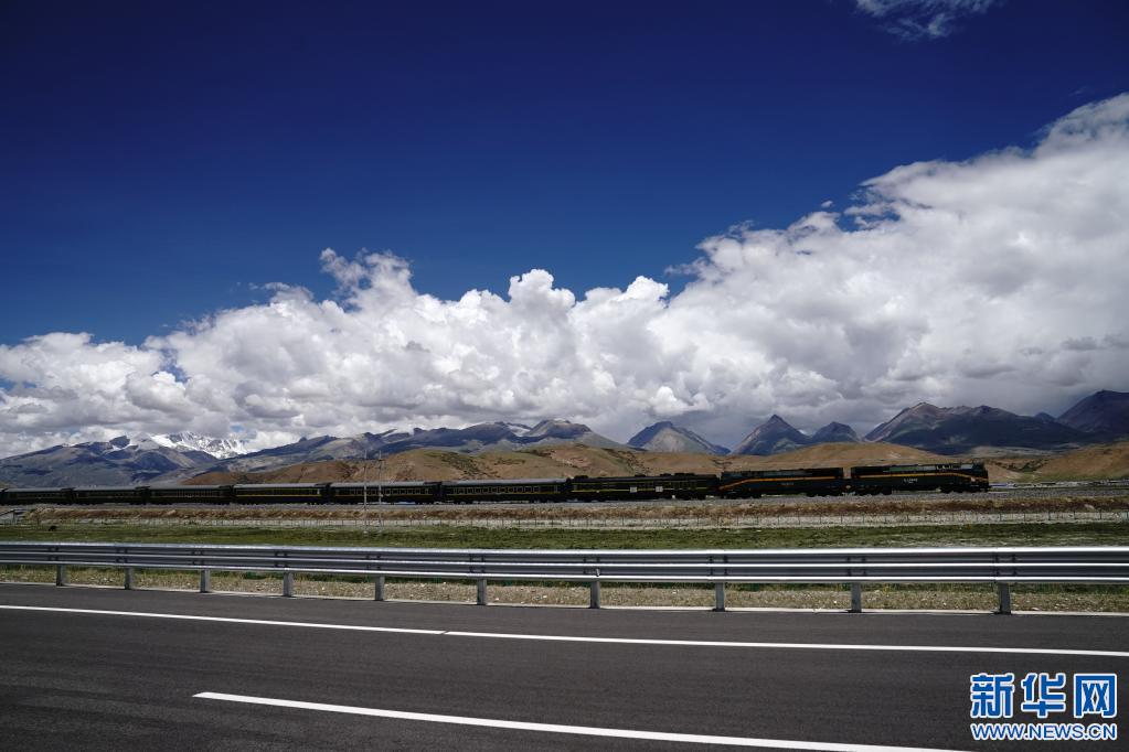 列車行駛在青藏鐵路拉薩市當雄縣境內(nèi)(2021年6月28日攝)。新華社記者 劉洪明 攝