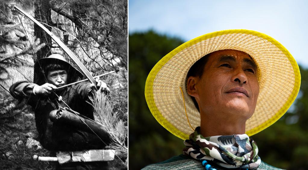 左圖是20世紀50年代瓊林村非常有名的獵手達前(資料照,新華社發(fā));右圖是瓊林村珞巴族達吉,結束打獵生涯,成為護林員(2021年6月19日攝)。新華社記者 晉美多吉 攝
