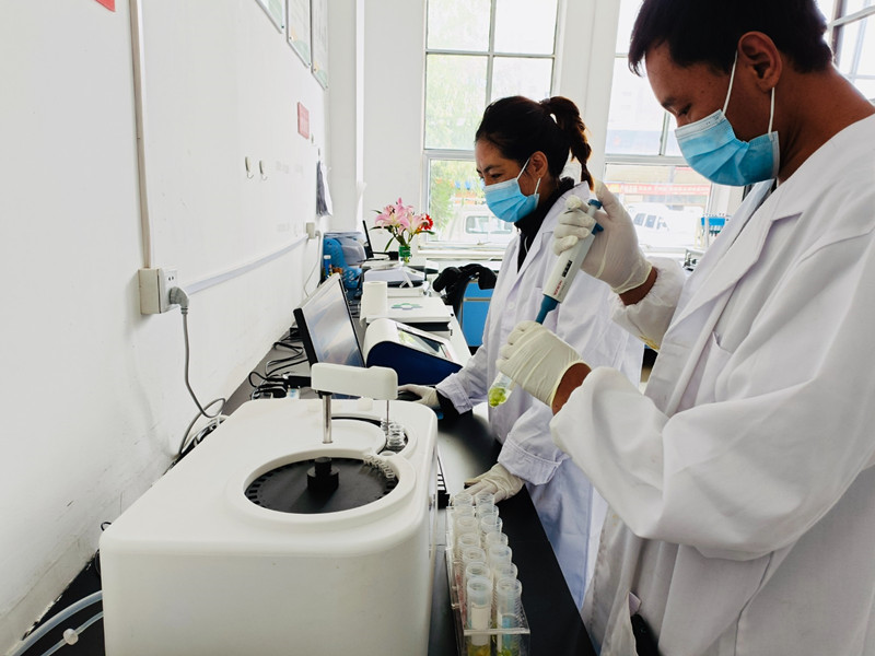 圖為西藏拉薩東嘎農(nóng)副產(chǎn)品批發(fā)市場快檢實驗室工作人員在對該市場內(nèi)農(nóng)副產(chǎn)品進(jìn)行檢測。記者 央金 攝