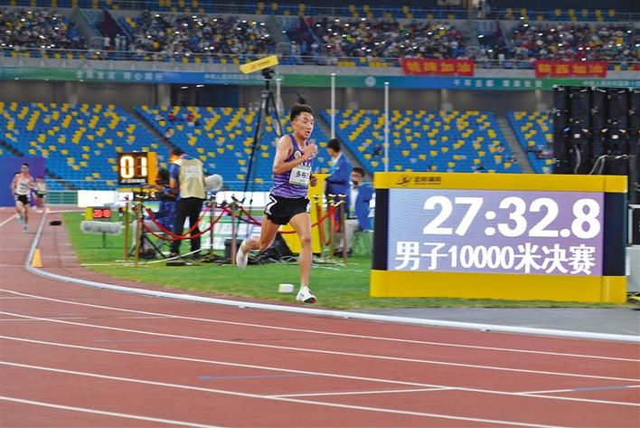 在同日進行的田徑項目男子10000米決賽中,西藏自治區(qū)選手多布杰、索朗才仁、旦木真次旺參賽。經過激烈鏖戰(zhàn),多布杰以28分35秒24的成績力壓群雄,勇奪冠軍,為西藏奪得本屆全運會第二金,蟬聯(lián)兩屆全運會該項目的冠軍。旦木真次旺和索朗才仁分別獲得了第四、第七名的好成績。
