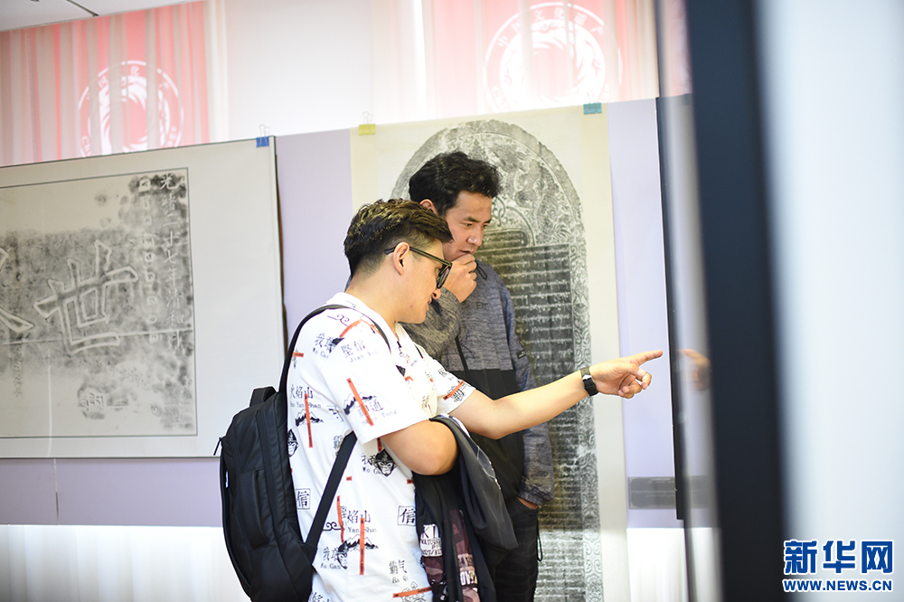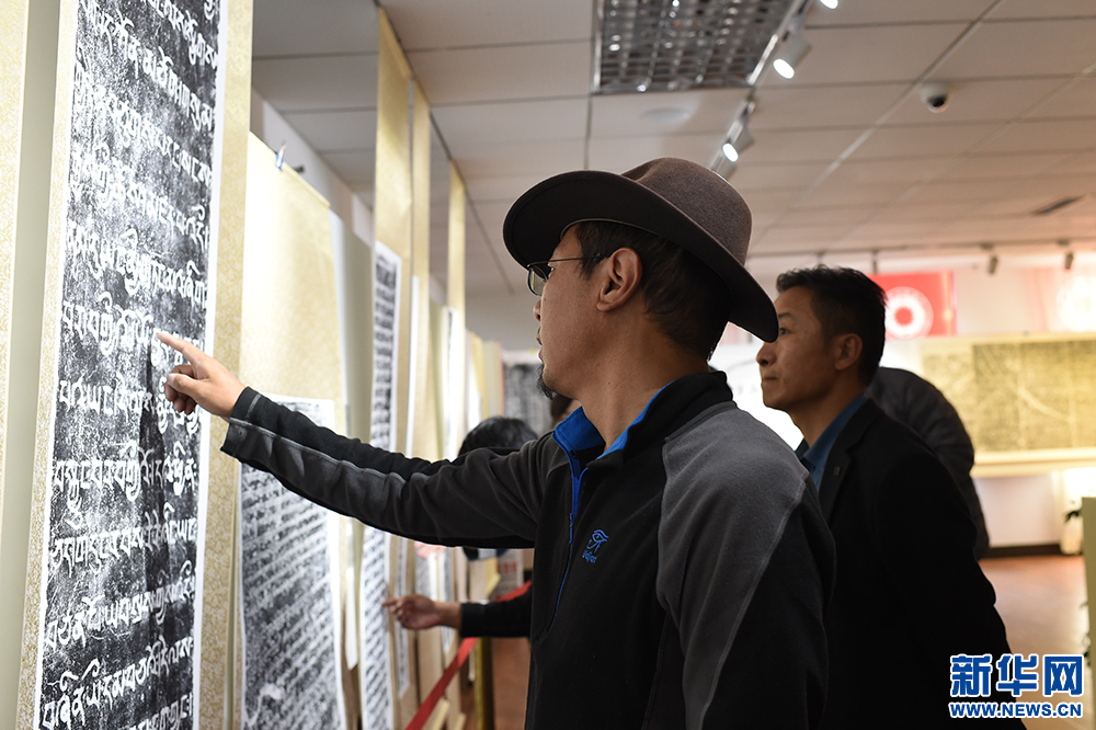 9月29日,在西藏大學新校區(qū)圖書館,參觀者觀賞石碑拓片內容。新華網 旦增努布 攝
