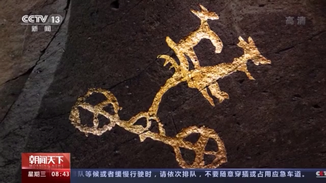 中國(guó)巖畫學(xué)會(huì)副會(huì)長(zhǎng)、西北大學(xué)文化遺產(chǎn)學(xué)院特聘教授 張建林:歐亞草原東部的車輛巖畫的制作的這種習(xí)俗,從北向南通過(guò)青海,翻過(guò)昆侖山和唐古拉山到了藏北高原,然后進(jìn)一步再傳播,就是車輛巖畫的這種傳播的線路。
