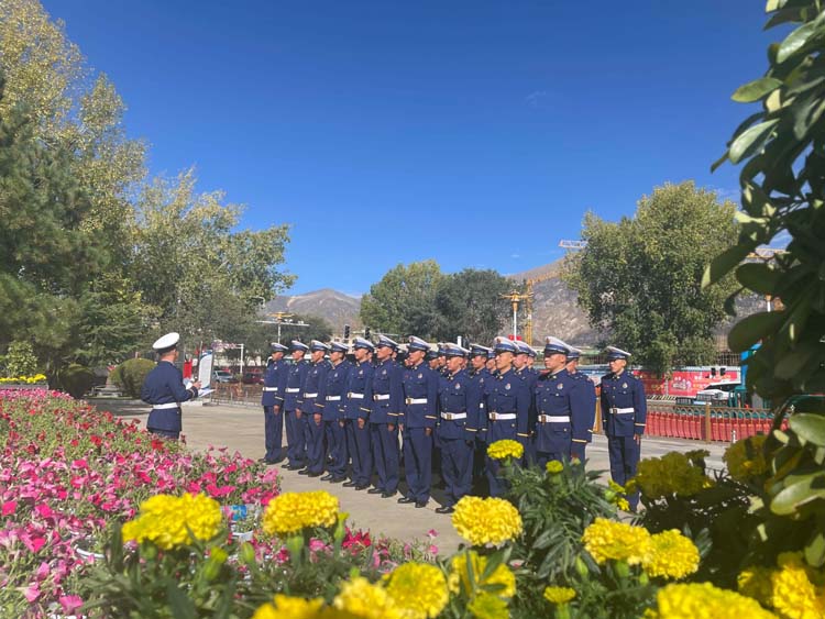 圖為西藏森林消防總隊(duì)特勤大隊(duì)在青藏川藏公路紀(jì)念碑前敬獻(xiàn)鮮花。