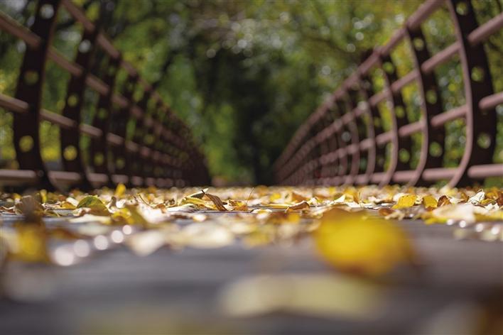 陽光溫暖地包裹著大地,穿過草木,穿過人群,在地上折射出好看的光影。樹木一排排整齊站立著,樹葉時不時隨風飄落,落在地面,鋪作一地金色的地毯,行人走過,發(fā)出“沙沙”的聲響,伴著人們的說笑聲,格外動聽美妙。