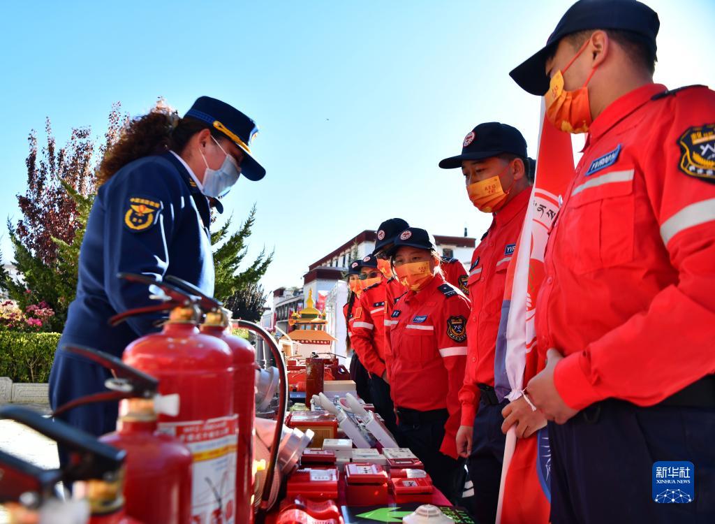 11月4日拍攝的西藏自治區(qū)2021年“119”消防宣傳月活動啟動儀式現(xiàn)場。新華社記者 晉美多吉 攝