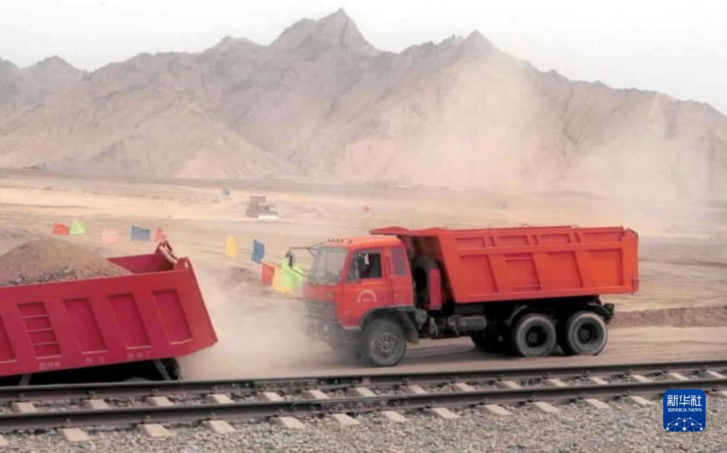 2001年6月29日,青藏鐵路二期工程格爾木至拉薩段鐵路正式動工修建。格爾木市南山口車站是格拉段鐵路的起點(diǎn)。圖為南山口施工現(xiàn)場。新華社記者 高學(xué)余 攝
