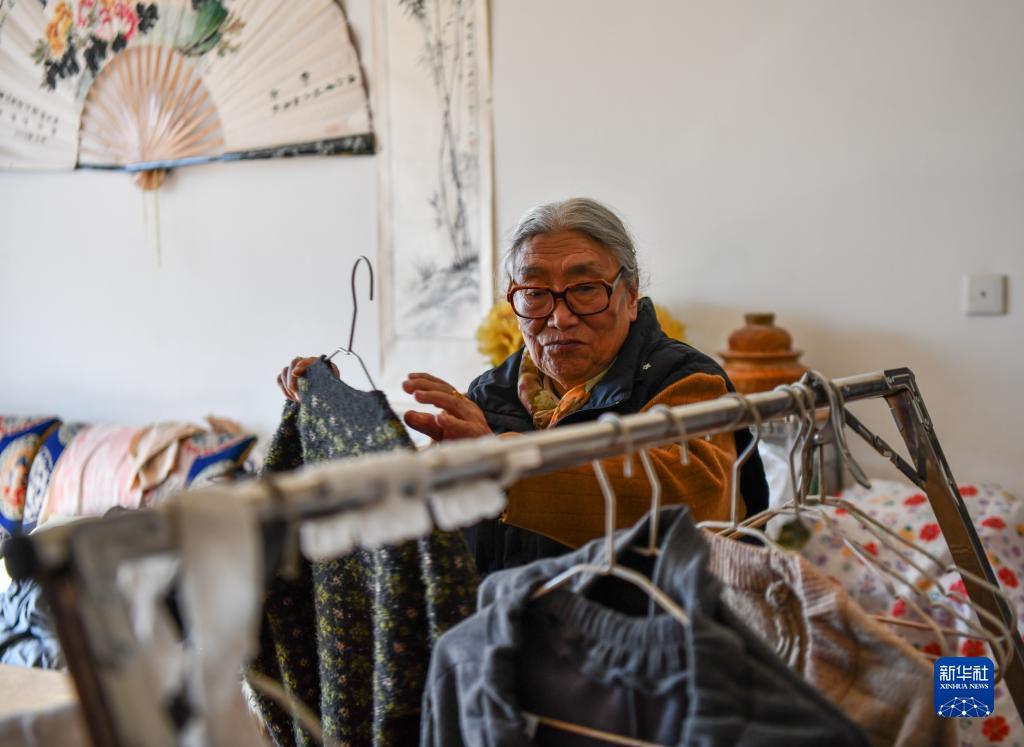 次仁卓瑪在收衣服(12月7日攝)。新華社記者 晉美多吉 攝