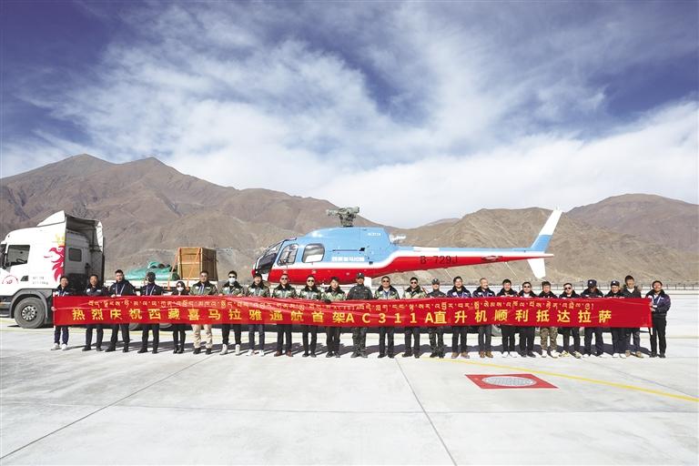喜迎西藏首架國產(chǎn)AC311A直升機(jī)。圖由西藏喜馬拉雅通用航空有限公司提供