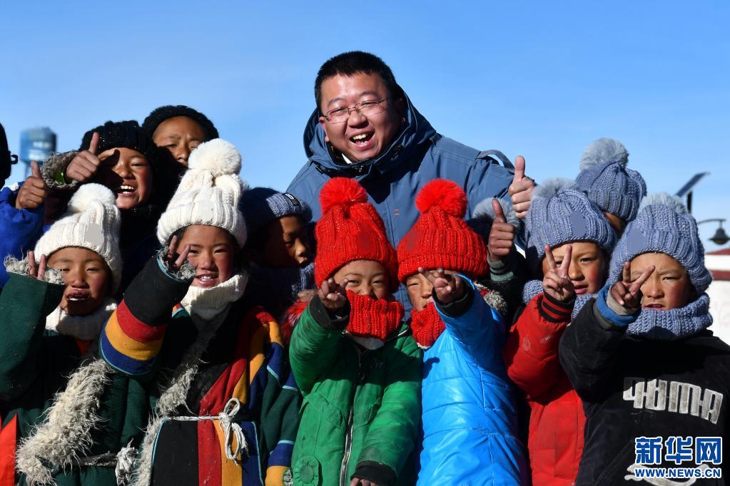 援藏教師潘杰和藏族學(xué)生在一起(12月12日攝)。