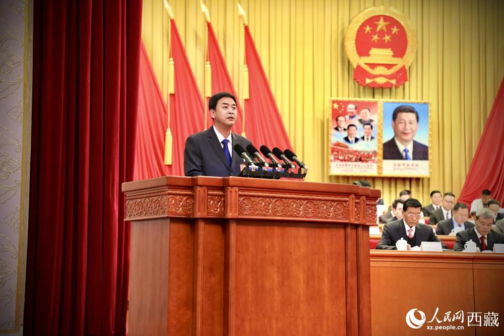 西藏自治區(qū)人民政府代理主席嚴(yán)金海向大會(huì)作政府工作報(bào)告。人民網(wǎng) 次仁羅布攝