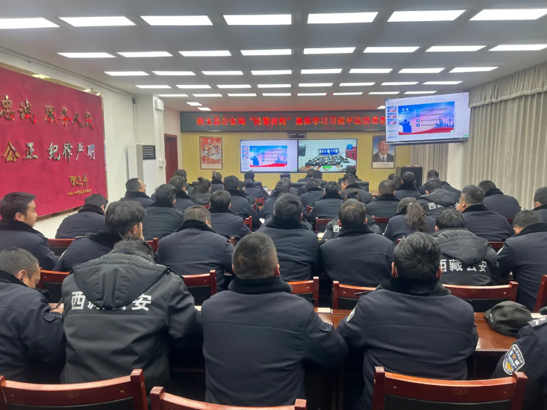為深入學(xué)習(xí)貫徹習(xí)近平法治思想,不斷牢固樹立法治理念、強(qiáng)化法治思維,大力推進(jìn)新時(shí)代法治公安建設(shè),著力提升公安工作法治化水平和執(zhí)法公信力。2022年1月14日,班戈縣公安局“民警夜校”由政府副縣長(zhǎng)、公安局黨委副書記、局長(zhǎng)、督察長(zhǎng)李義真同志組織全體民輔警集體學(xué)習(xí)習(xí)近平法治思想,此次學(xué)習(xí)會(huì)以視頻會(huì)議形式開至鄉(xiāng)鎮(zhèn)一級(jí)。