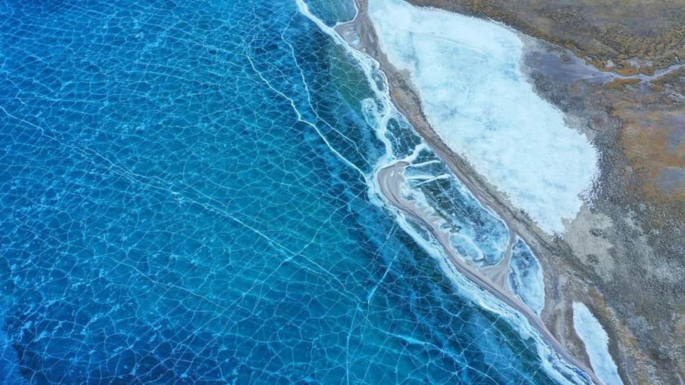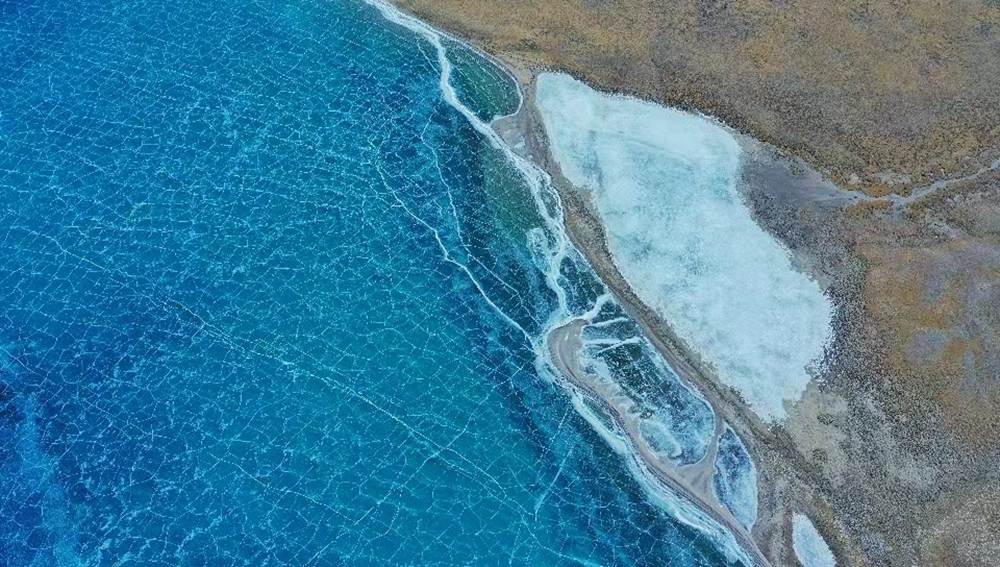 位于西藏山南市洛扎縣和浪卡子縣交界處的普莫雍錯(cuò),是喜馬拉雅山脈間的一個(gè)咸水湖,湖面海拔5070m。冬季的普莫雍錯(cuò)湖面會(huì)結(jié)冰,冰面通透可見(jiàn)湖底,在陽(yáng)光的照射下,呈現(xiàn)出動(dòng)人心魄的藍(lán)。