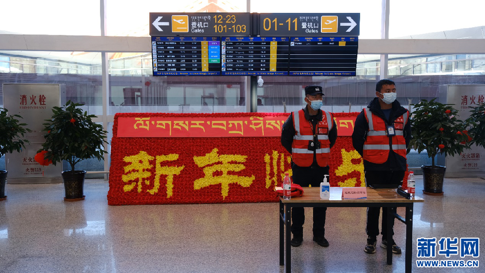 圖為拉薩貢嘎機(jī)場(chǎng)T3航站樓內(nèi)志愿者服務(wù)點(diǎn)(1月17日攝)。新華網(wǎng) 柑丹鴦琦 攝