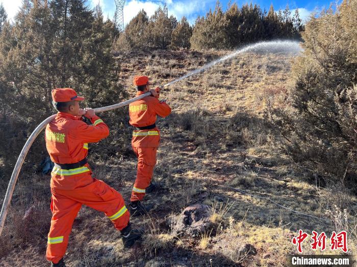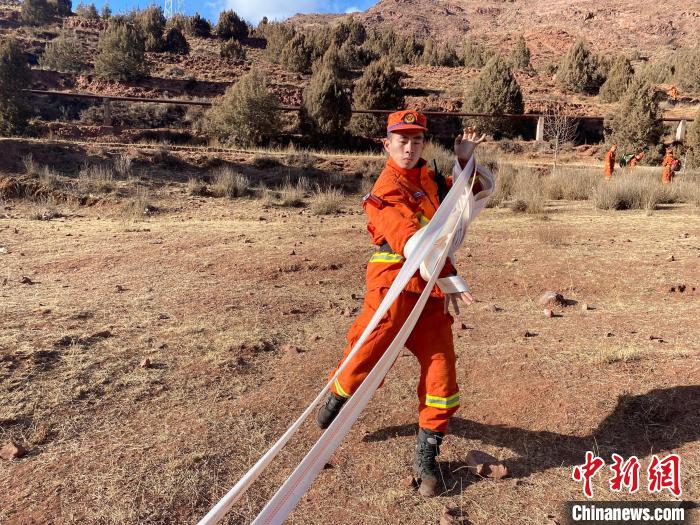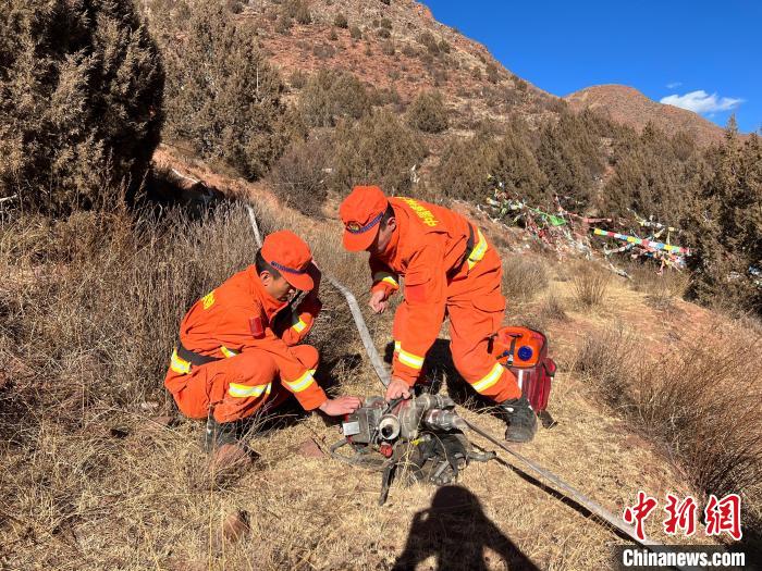 圖為消防指戰(zhàn)員架設(shè)水源地。江達(dá)縣森林消防中隊(duì)貢覺(jué)駐防分隊(duì) 供圖