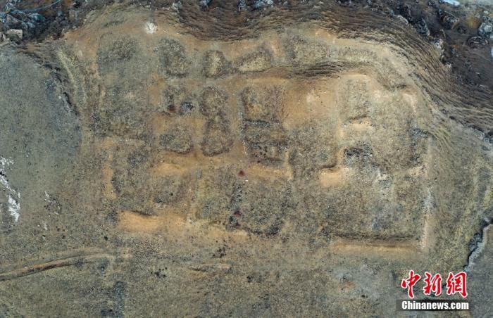 圖為1月19日拍攝的西藏拉薩市堆龍德慶區(qū)德慶鄉(xiāng)邱桑村邱桑溫泉所在的古遺址。(無人機照片) 中新社記者 貢嘎來松 攝