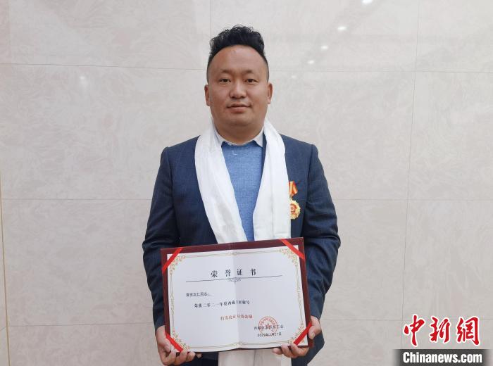 圖為普窮次仁獲2021年度“西藏工匠”稱號(hào) 趙延 攝