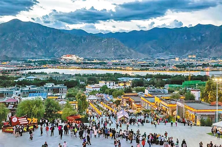 夜色漸濃,位于拉薩河畔寶瓶山上的文成公主劇場,被成片的火燒云染成了耀眼的橙,熙攘人潮,暮色流光,劇場下方的慈覺林藏院風(fēng)情街更是人潮涌動。近年來,隨著冬季旅游政策的不斷推進(jìn),有效促進(jìn)了西藏全季、全時旅游的發(fā)展,而處于夏季旅游黃金時期的西藏旅游則更加火爆。作為西藏文化旅游的靚麗名片,《文成公主》實(shí)景劇引來了更多游客前來觀看。
