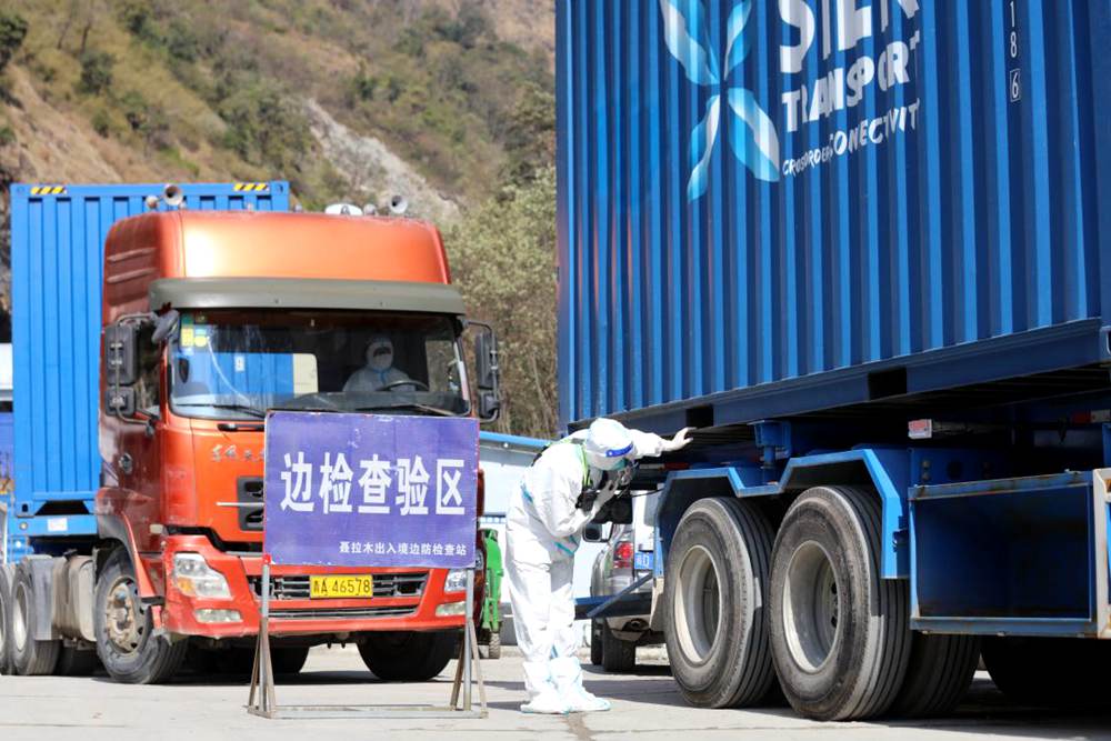 仔細查驗車輛。索朗次仁攝