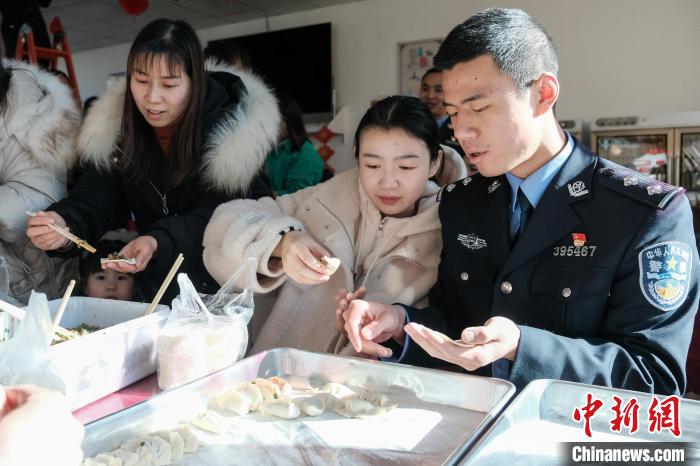 戍邊民警和家人一起包餃子。 江飛波 攝