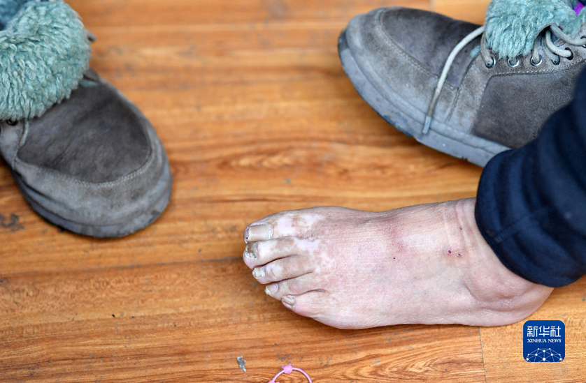 達(dá)吉阿媽的身上,如今仍留有送菜時(shí)的凍傷(1月26日攝)。新華社記者 覺果 攝