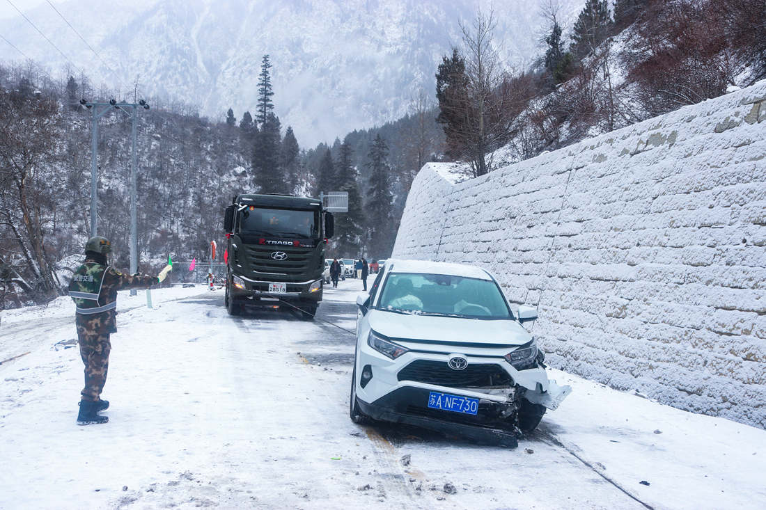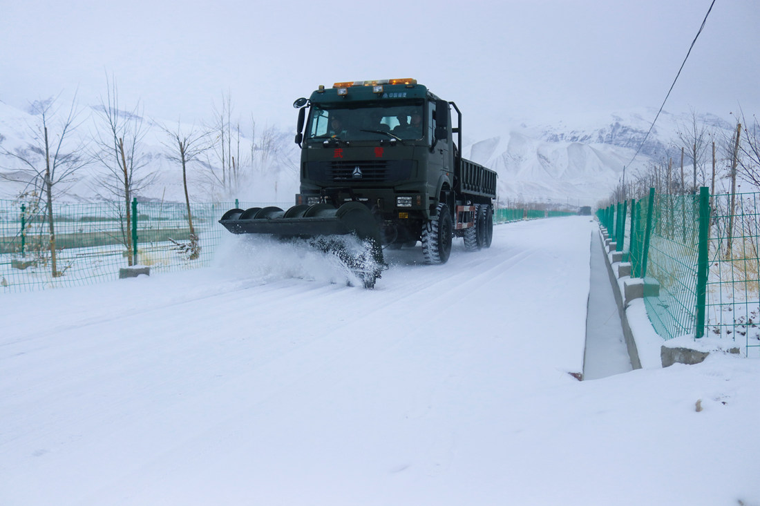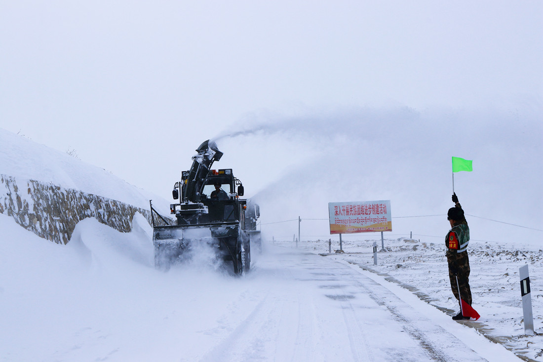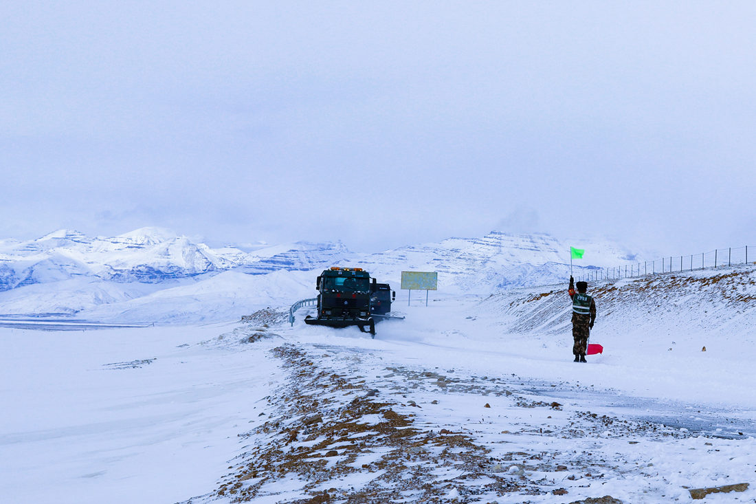 因災(zāi)害現(xiàn)場地處平均海拔4000多米以上海拔,持續(xù)降雪不斷,加之氣溫低至零下20多攝氏度,給整個道路搶通工作帶來了不少難度。為盡快清理路面積雪搶通道路,武警官兵采取“人歇機(jī)不停、分段搶通、先通后拓”的方法進(jìn)行全力搶通,克服了高寒缺氧及紫外線強(qiáng)烈等重重困難。