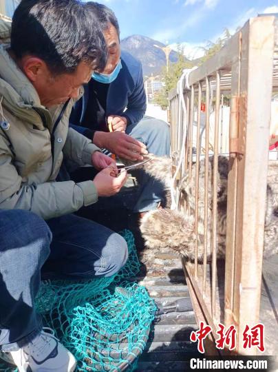 經(jīng)現(xiàn)場查看并向群眾了解,雪豹闖入開朗村一戶村民家院子試圖捕食家畜,村民發(fā)現(xiàn)后進行驅(qū)趕,雪豹在逃離過程中被院子周邊網(wǎng)圍欄困住??紤]到雪豹性情兇猛、攻擊性強、周圍群眾較多的實際,為避免雪豹受驚嚇對群眾造成傷害,工作人員對雪豹進行麻醉救護,并運送至林芝市野生動物收容救護站作全面身體檢查。